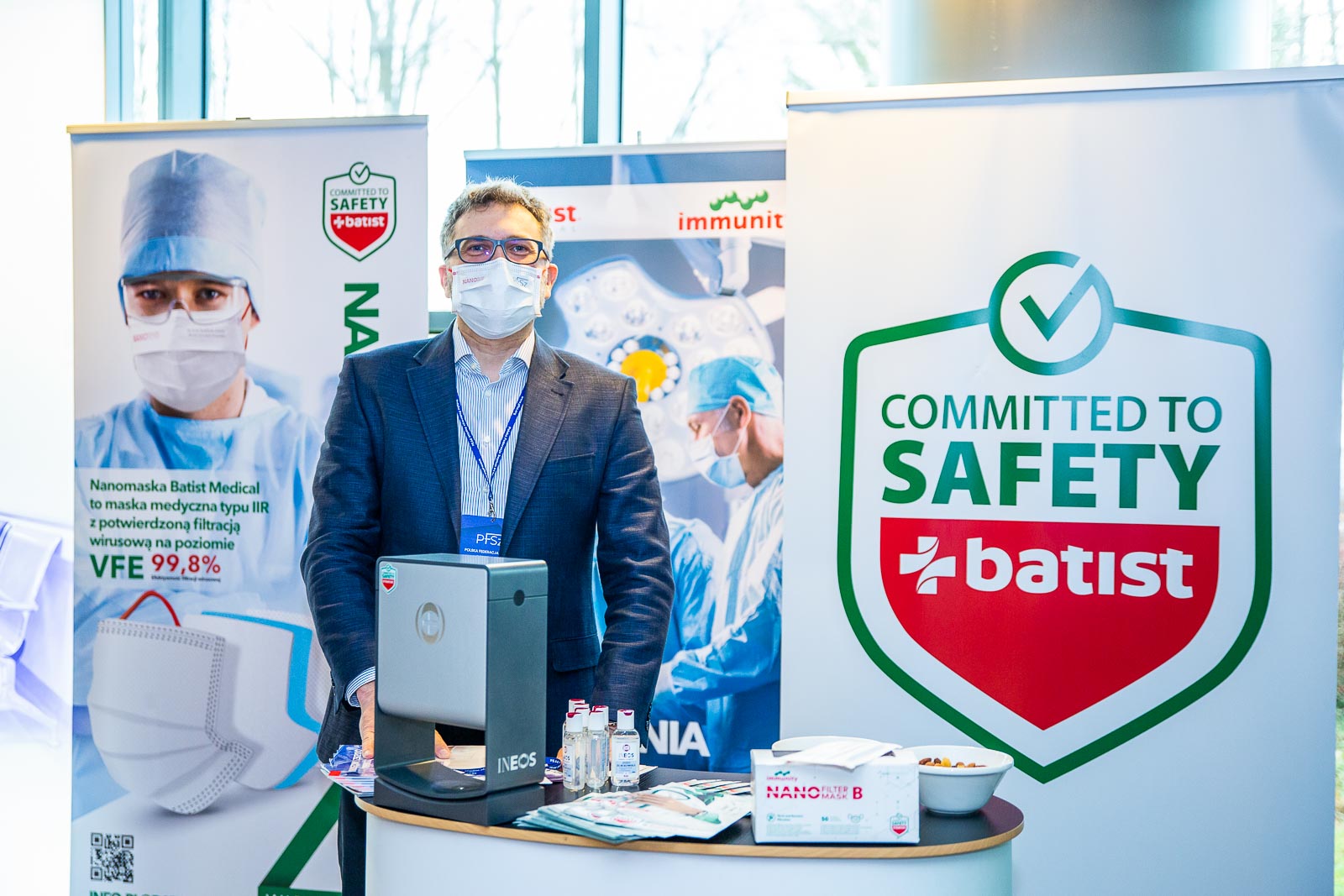 Uczestnicy konferencji byli w pełni zaszczepieni przeciwko COVID-19, dołożyliśmy wszelkich starań, by zapewnić jak najwyższy poziom bezpieczeństwa, w tym: najnowocześniejsze maseczki typu nano-mask oraz płyny dezynfekujące (dostarczone przez Batist Medical Polska), oraz super wydajne oczyszczacze powietrza marki GENANO, (dostarczone przez W.P.I.P) które wg. stałego monitorowania jakości powietrza na sali obrad potwierdzały osiągnięcie norm wymaganych dla sal operacyjnych