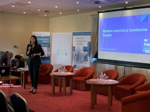 Konferencje rozpoczęliśmy prezentacją wyników Badania Satysfakcji Dyrektorów Szpitali, które prowadziła Project Manager PFSz, Urszula Szybowicz. Działania zespołu Młodzi Menedżerowie Medycyny przedstawiła Ligia Kornowska, Dyrektor Zarządzajaca PFSz i przewodnicząca zespołu. Aktualności programu wymiany meneżderów Europejskiej Federacji Szpitali HOPE zaprezentował Bogusław Budziński, krajowy koordynator programu i wiceprzewodniczący Rady Naczelnej PFSz oraz Anna Warczyńska Współpracę z PFSz omówiła Beata Jagielska, prezes Polskiej Koalicji Medycyny Personalizowanej i członek Zarzadu PFSz. Pani Joanna Szyman, Prezes UpperFinanse przedstawiła prezentację o wykorzystaniu robotów w medycynie. Nie mogło zabraknąć wystąpienia Pana Andrzeja Mądrali, wiceprezydenta Pracodawców RP, który przedstawił aktualności zespołu trójstronnego.