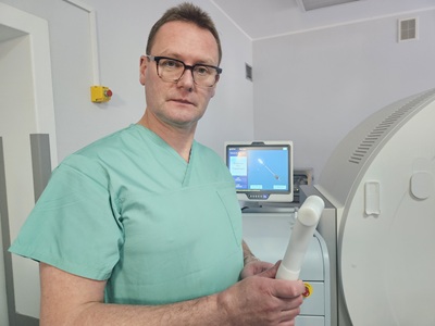 – Zabieg polegał na wprowadzeniu przez skórę igły do krioablacji, przez którą podawany był ciekły azot o temperaturze -170 °C. Wówczas na końcu igły powstało coś na kształt kuli lodowej, która spowodowała zamrożenie tkanki nowotworowej. Taki proces był powtarzany dwukrotnie, co w efekcie doprowadziło do mechanicznego zniszczenia guza. Dodatkowo proces mrożenia wywołuje odpowiedź immunologiczną organizmu, co pomaga w procesie leczenia. Zabieg wykonany był przy użyciu tomografii komputerowej, która umożliwia precyzyjne obrazowanie i „wycelowanie” lodową kulą w guza, dlatego do jego przeprowadzenia konieczna jest ścisła współpraca urologów z radiologami – wyjaśnia dr hab. n. med. Marcin Życzkowski, prof. UO, kierownik Oddziału Urologii USK w Opolu i Kliniki Urologii Uniwersytetu Opolskiego.