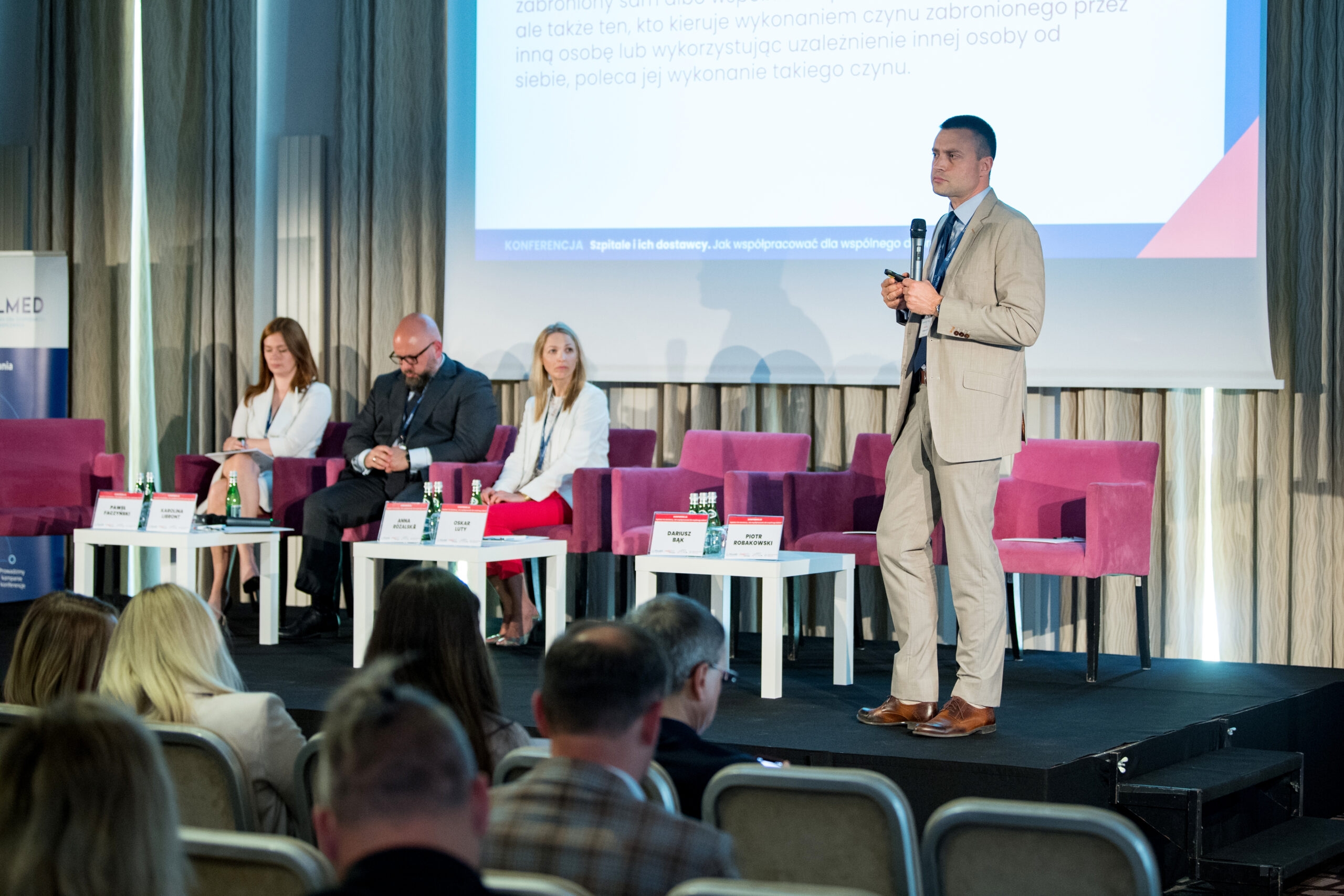 Pierwszy panel dotyczył współpracy pomiędzy szpitalami i dostawcami. Uczestnicy debaty omówili kwestie prawa i etyki w różnych obszarach tych kontaktów m.in. w zamówieniach publicznych. Eksperci dyskutowali m. in. na temat dyscypliny komunikacji handlowej, ryzyk korupcyjnych, odpowiedzialności karnej kierownika podmiotu leczniczego i kierownika działu zamówień publicznych. Wskazywano na konieczność wprowadzania rozwiązań gwarantujących transparentność współpracy pomiędzy przedstawicielami systemu ochrony zdrowia i branży wyrobów medycznych.