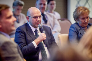 Profesor Jarosław Fedorowski, przewodniczący konferencji i prezes Polskiej Federacji Szpitali, to pomysłodawca wprowadzenia nowej formy dyskusji, tzw. “fishbowl” (kuliste akwarium). Ta dynamiczna forma panelu, polegająca na otwartym, dwupoziomowym kręgu dyskusyjnym z możliwością rotacji uczestników, pozwala na żywą wymianę poglądów między kluczowymi ekspertami sektora ochrony zdrowia (tzw. “grube ryby”) a szerszym gronem słuchaczy.